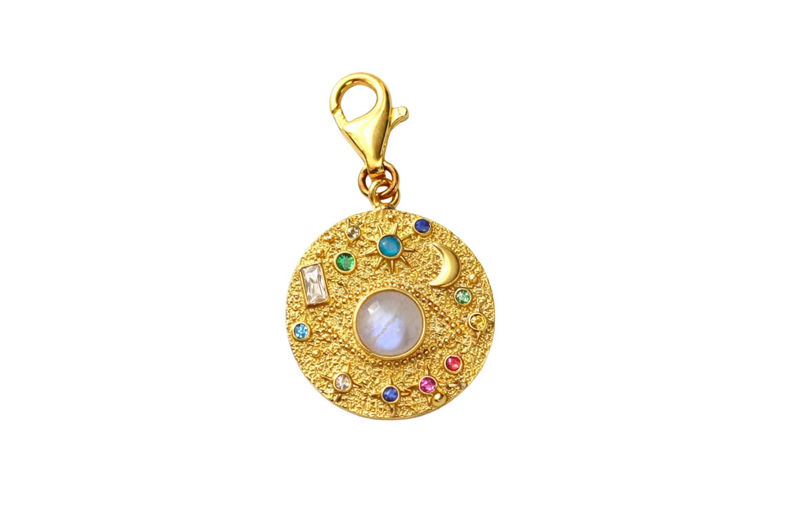 Add some magic to your stack with the Moonstone Amulet! This little universe is handcrafted from gold-plated sterling silver and features a dreamy moonstone that glows with every move you make. Stars, the sun, the moon; it’s all in there.
